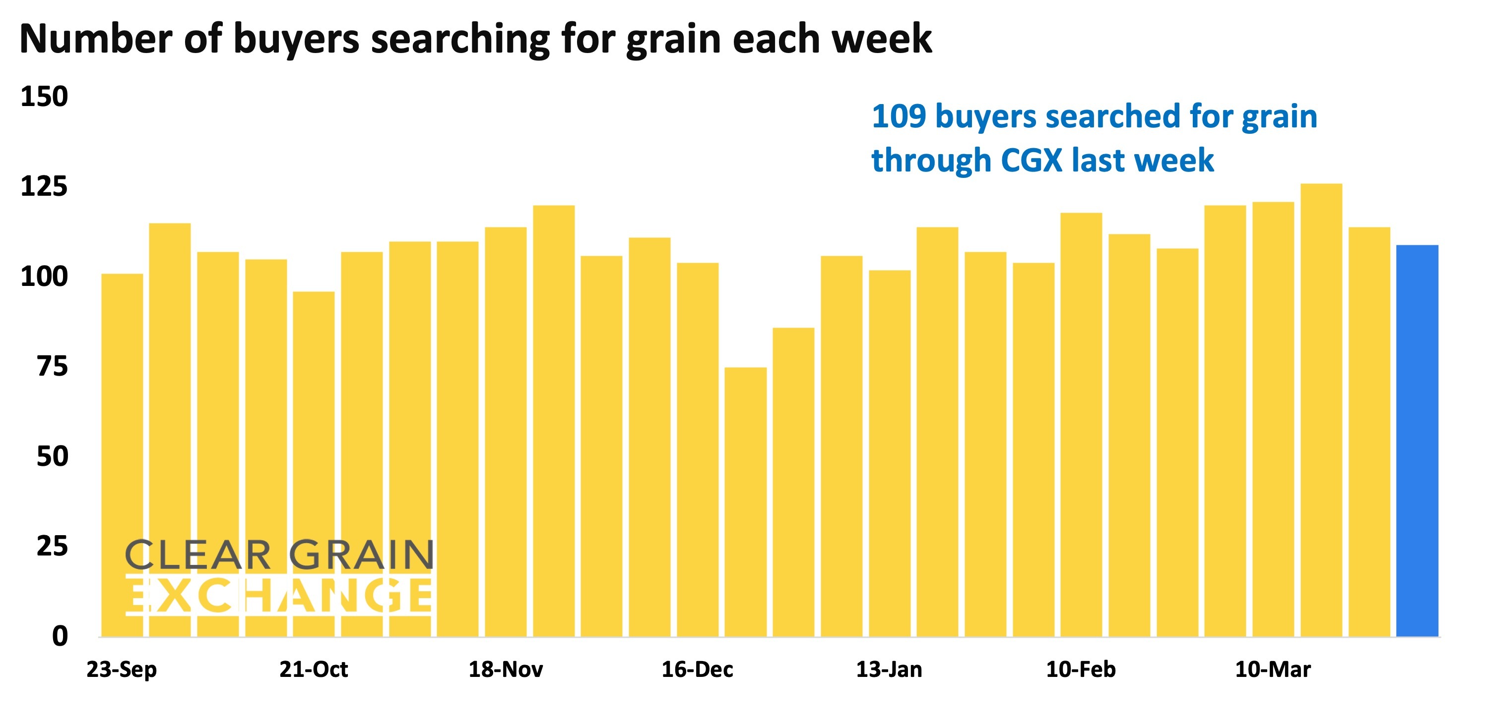 37 buyers purchased grain through CGX and igrainX, a total of 109 buyers made 6,437 searches for grain listed for sale on the exchange.