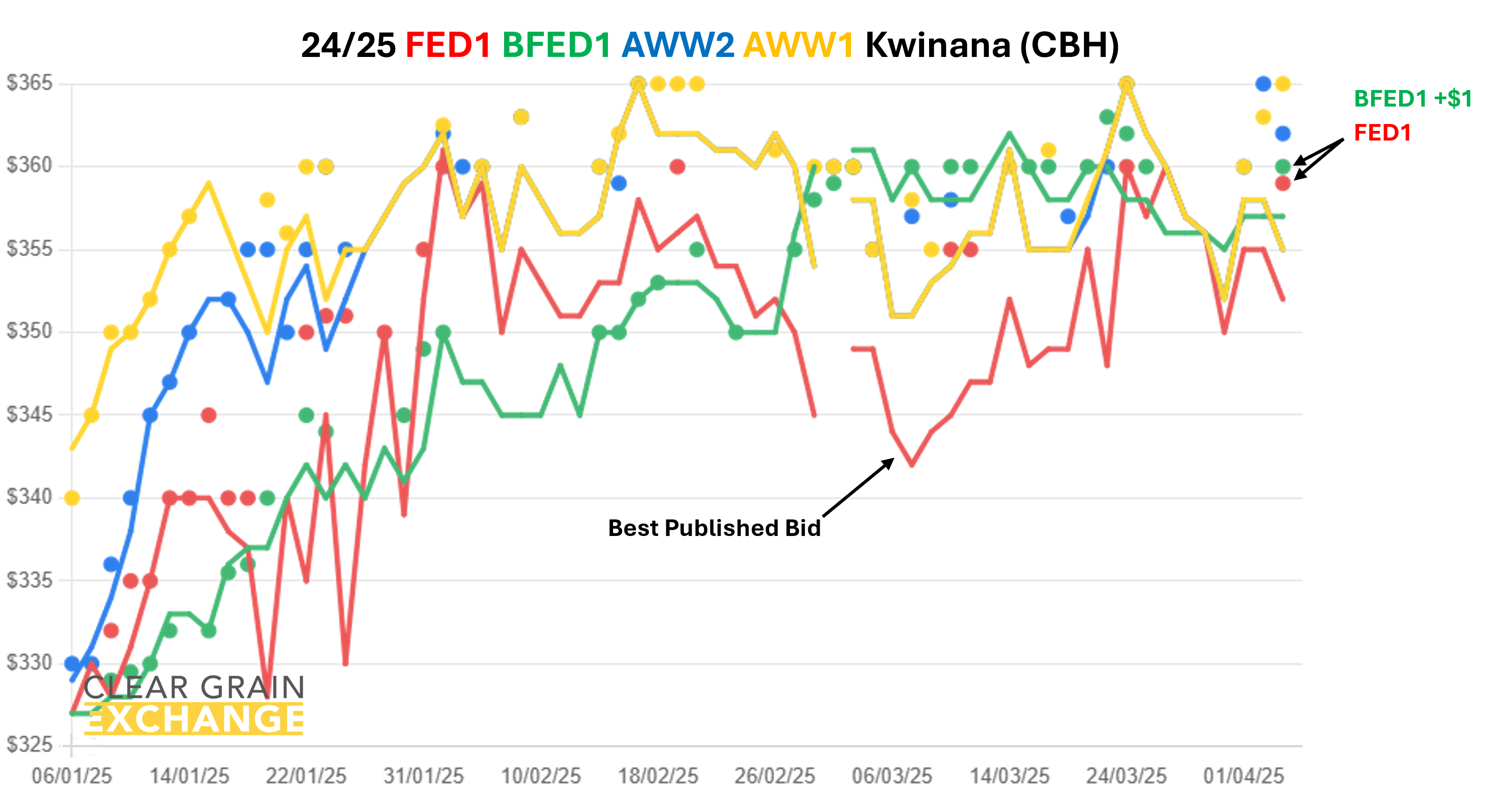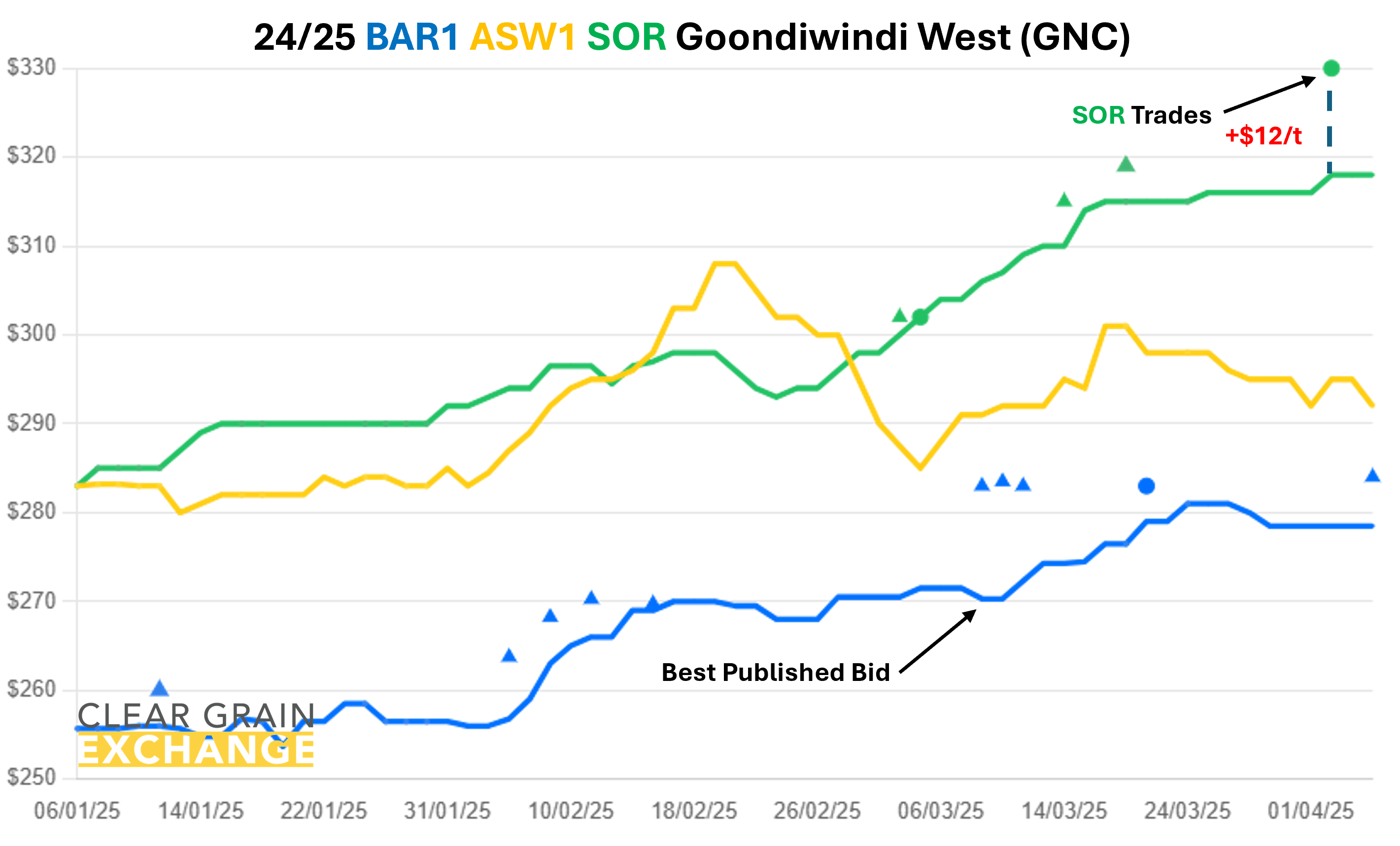 Growers are impacting the price of Australian grain by offering grain for sale and leading bids higher.