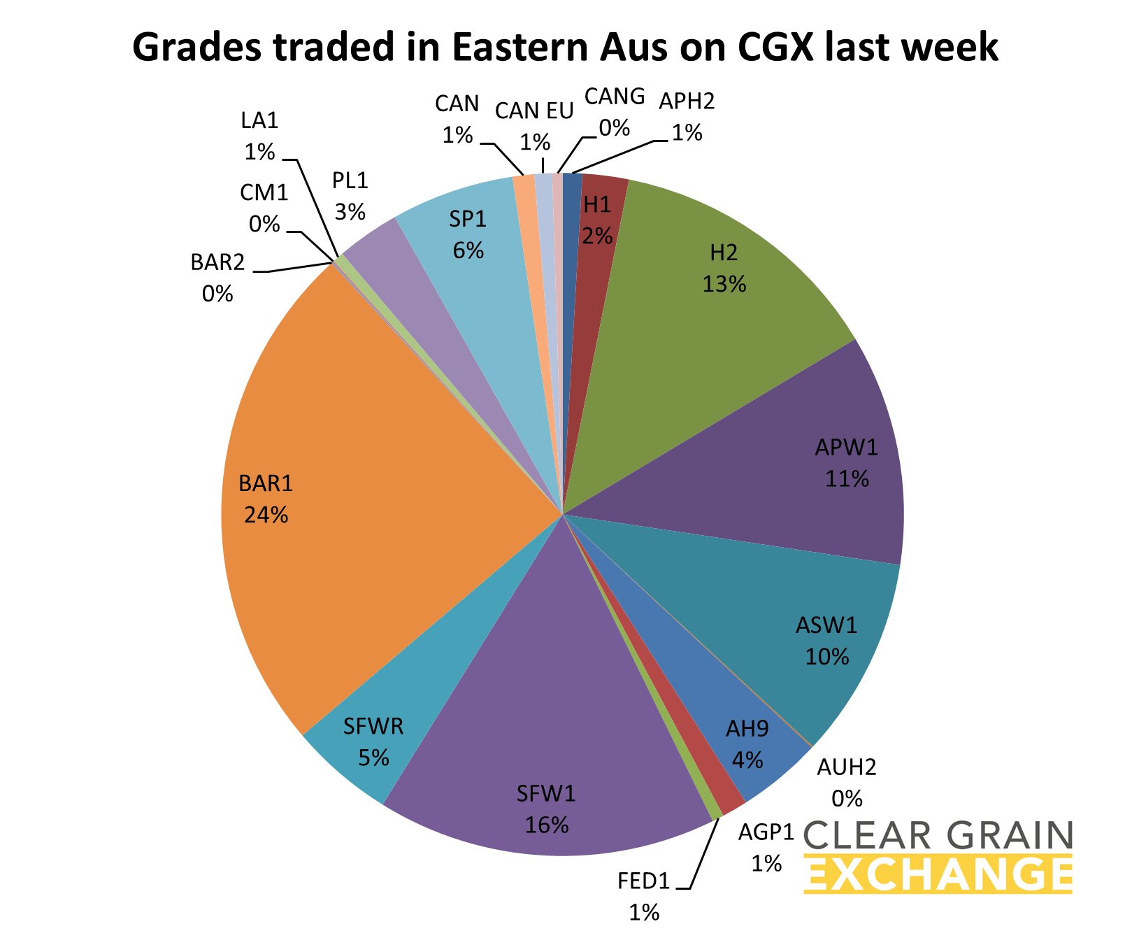 7 commodities traded - wheat, barley, canola, oats, peas, lupins, faba beans