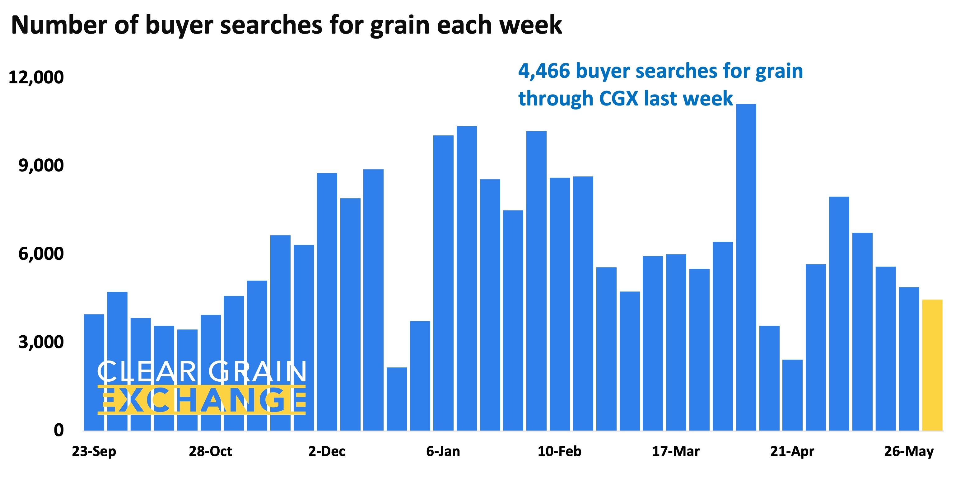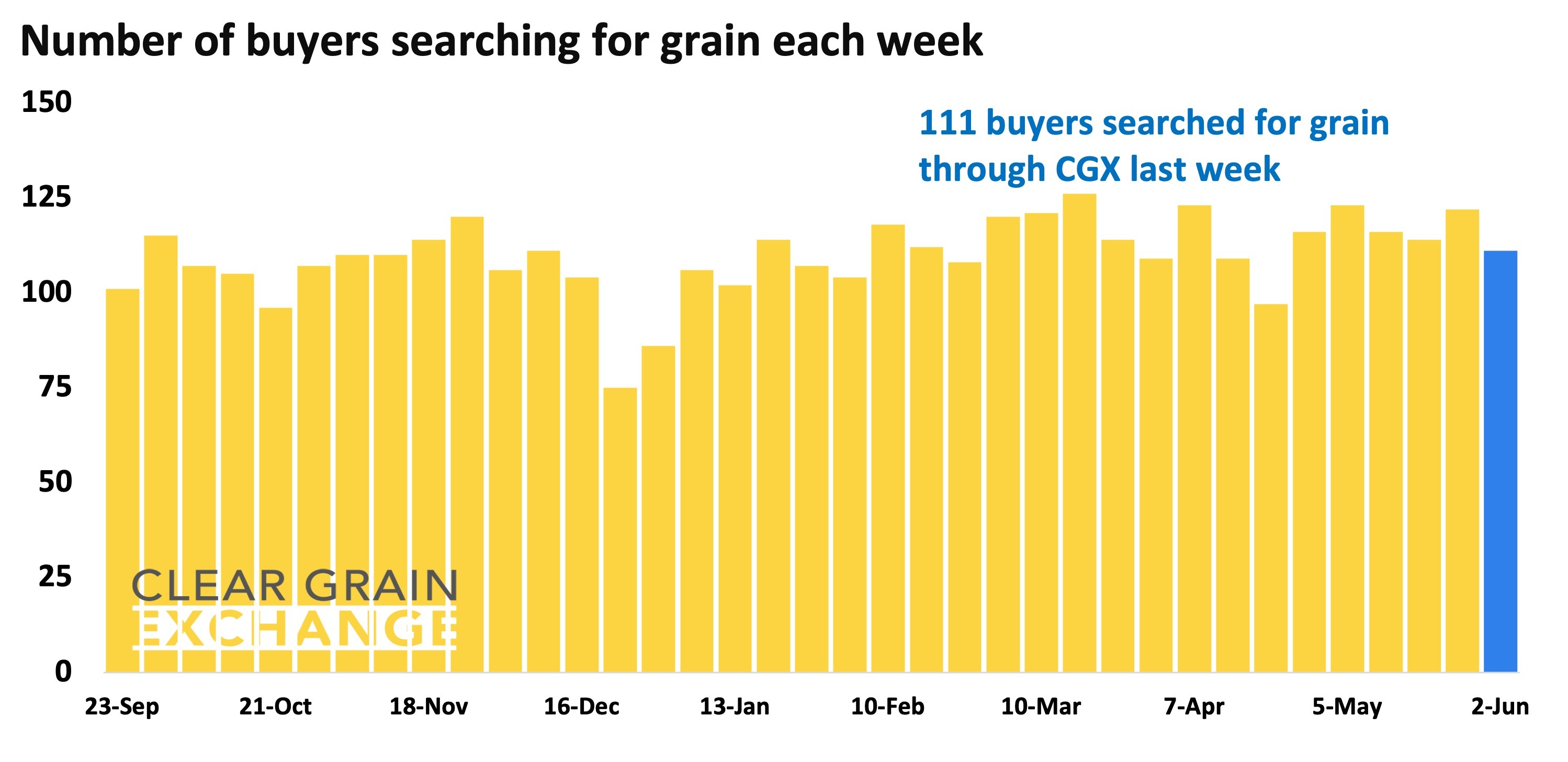 Plenty of buyers are looking for grain with 42 buyers bidding for grain last week and 111 buyers made 4,466 searches for grain listed for sale on Clear Grain Exchange and igrainX.